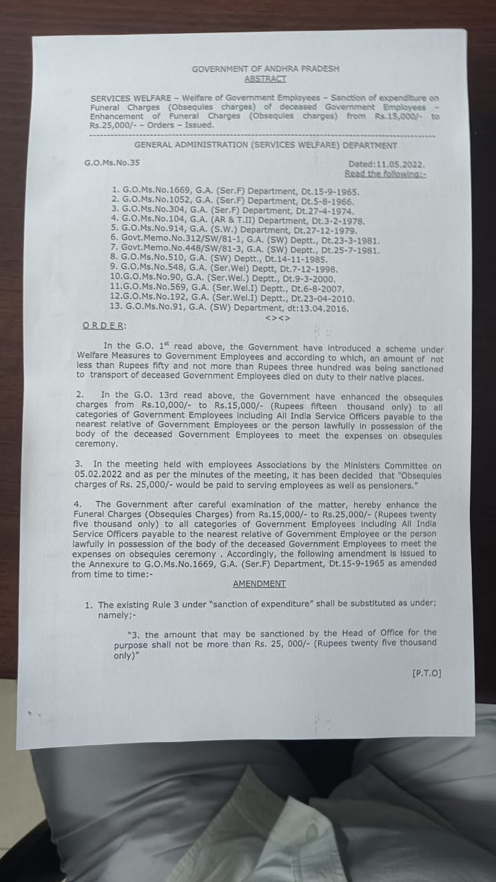 Sanction of expenditure on funeral charges 25000/- GO May 17 2022 Share this: Share on X (Opens in new window) X Share on Facebook (Opens in new window) Facebook More Email a link to a friend (Opens in new window) Email Like Loading... Related Published by ఇది వాస్తవం Working ఫర్ society View all posts by ఇది వాస్తవం