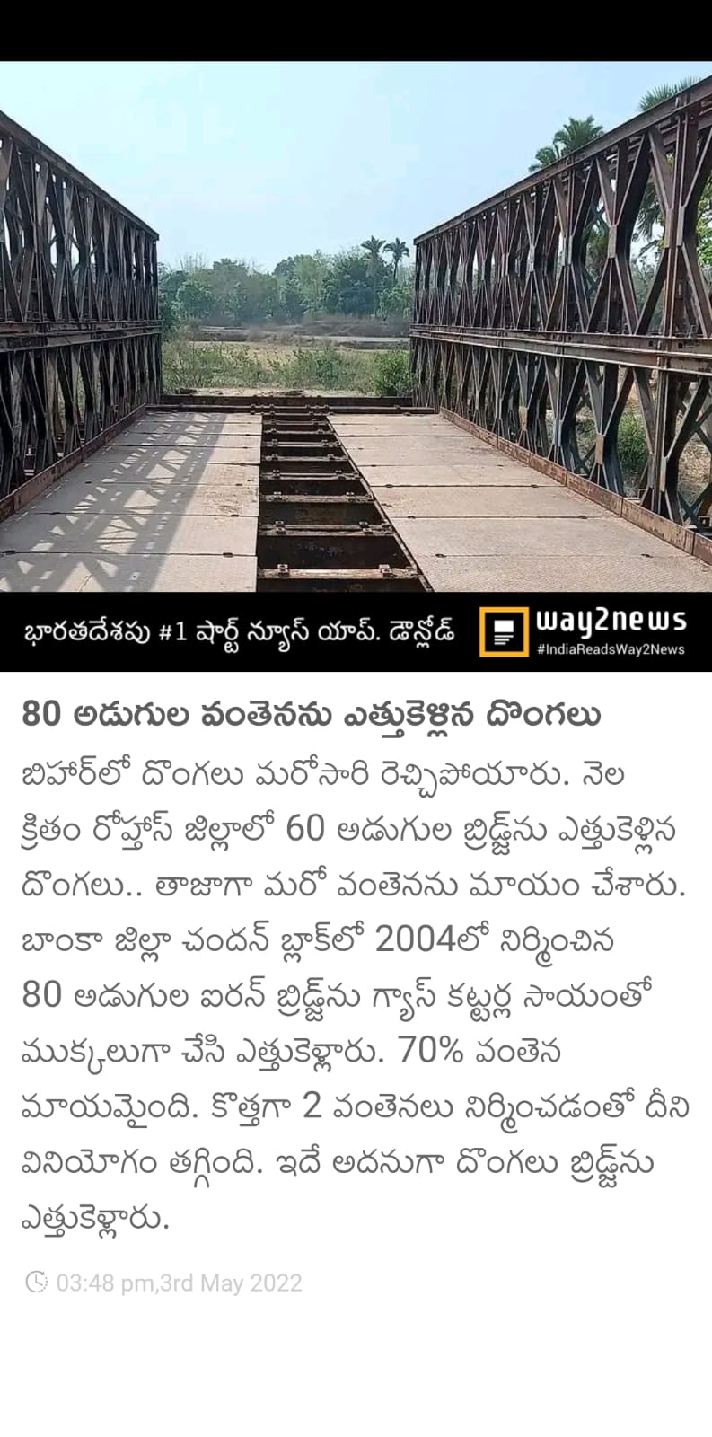 80 అడుగుల వంతెనను ఎత్తుకెళ్లిన దుండగులు.